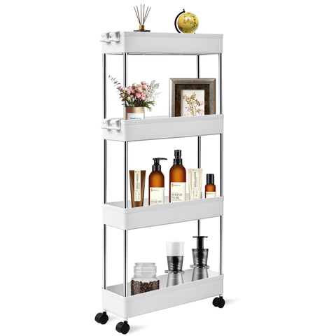 Carrinho de armazenamento de plástico fino, giratório de alta qualidade, cozinha, banheiro, pp, branco, 4 camadas de prateleira