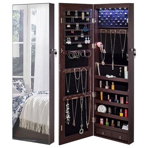 Organizador de armazenamento para armário, joias com iluminação led, para pendurar na parede