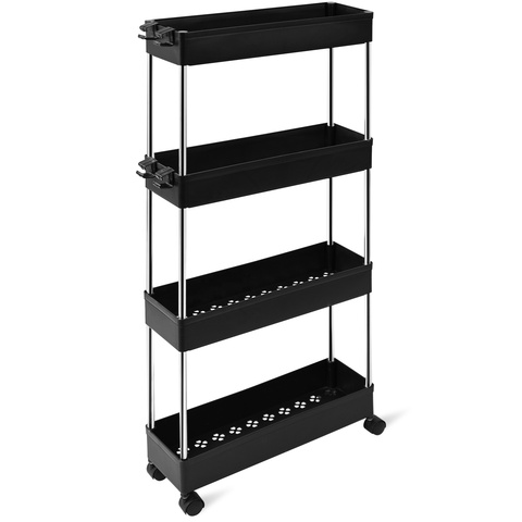 4 andares de prateleira com rodas plásticas, organizador da cozinha do banheiro, carrinho de armazenamento, magro, com gancho